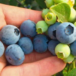 Figura 2. Racimo de frutos de arándano mostrando distintos estados de desarrollo y maduración. Fuente: Fall Creek®.
